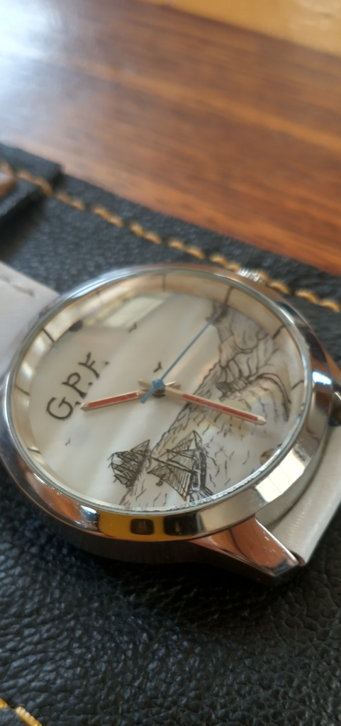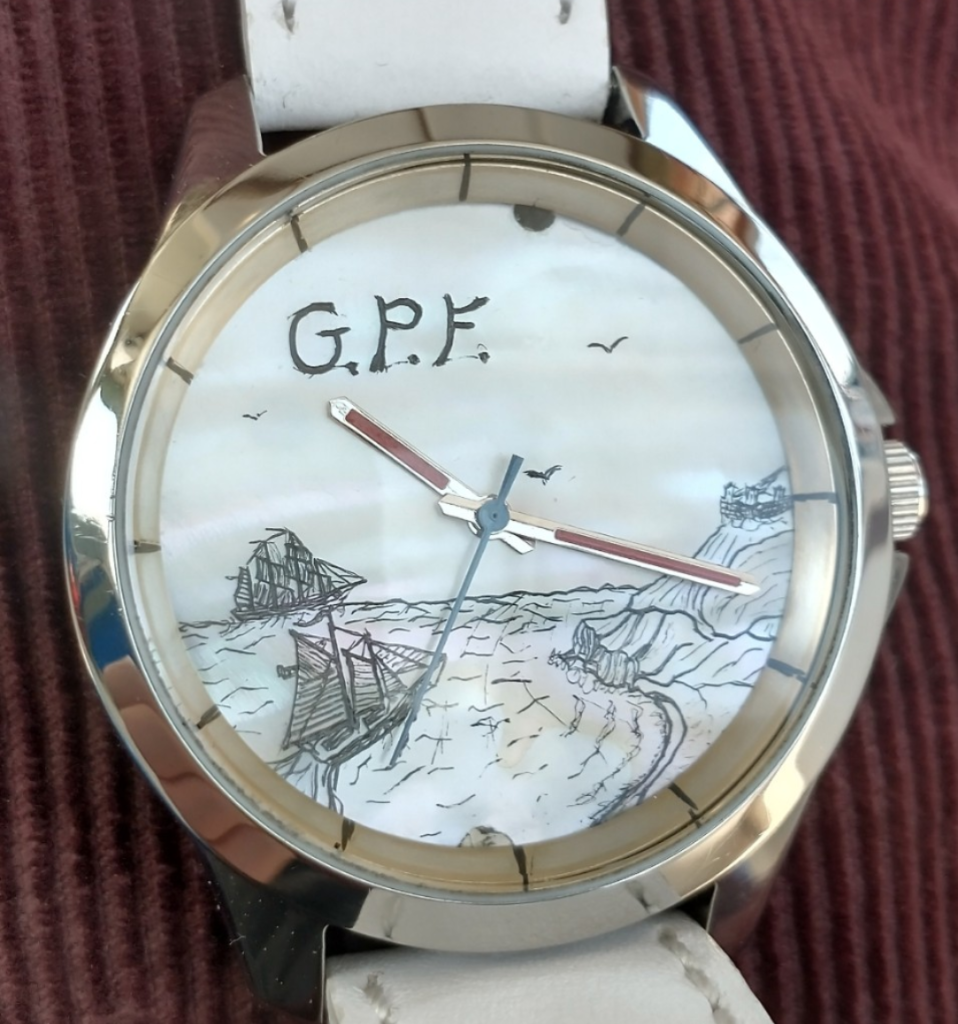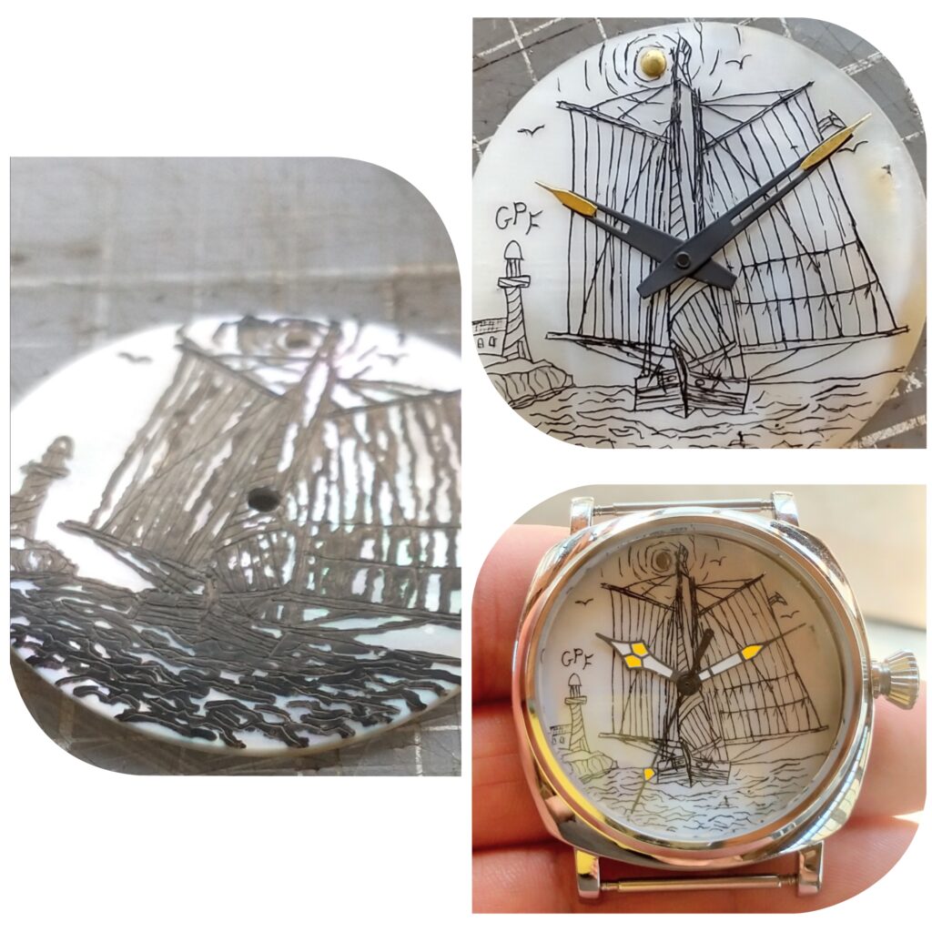 Having been a sailor most of my life, employing the technique of scrimshaw to decorate nacre watch dials is a natural extension of who I am.