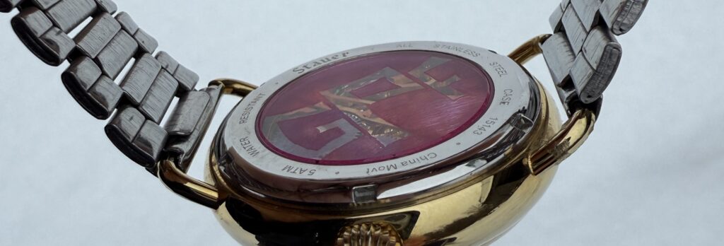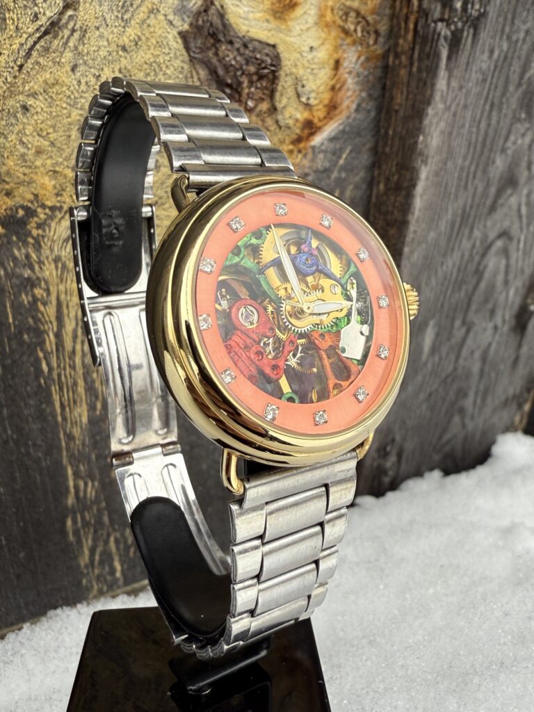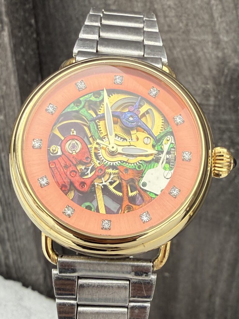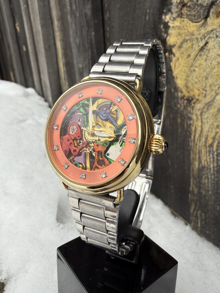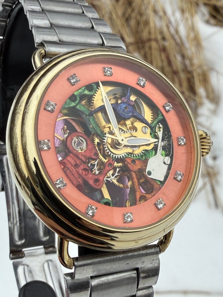 The case used to house this skeletonization comes from a Stauer watch, and is made of stainless steel, measures 38.5mm in diameter, and has a mineral glass crystal. For the mentioned price, I am including a vintage Enicar bracelet – a bespoke strap can be added for an additional sum.