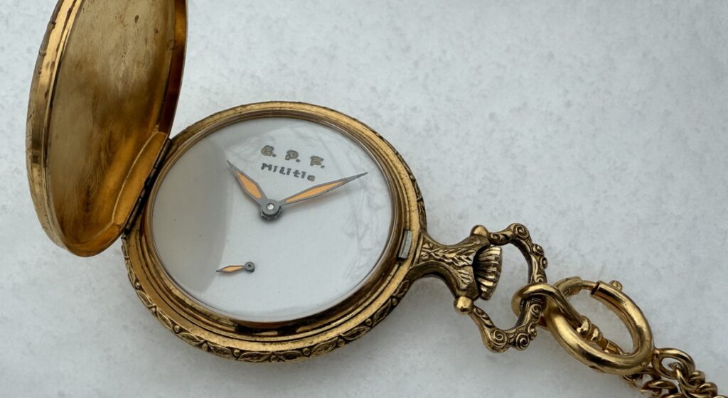 Pocketwatches for Sale The following pocket watches are available for purchase. Please contact me if anything strikes your fancy… TrainmasterOriginal GPF skeletonization of a vintage movement and dial $420Read More Mickey Pocket SkeletonGPF modified authentic Disney pocketwatch $190Read More Winter Camoa vintage case containing new, modern innards $110Read More Home PageAbout GPFOn the BenchArchive GalleryWristwatches for SaleContact