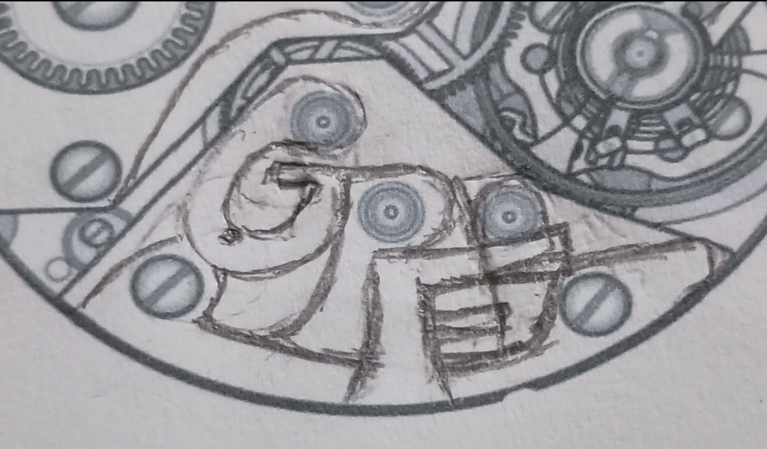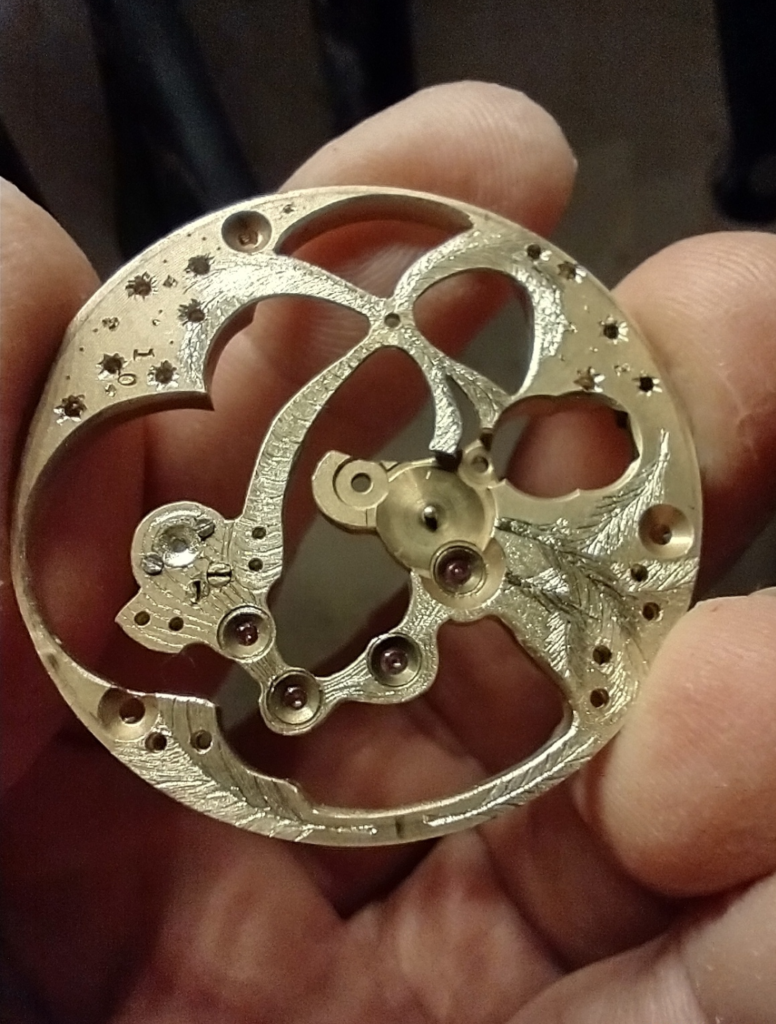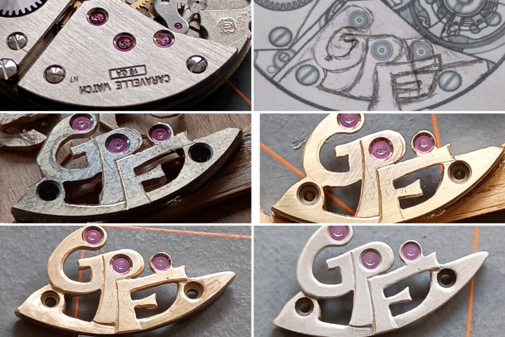 The process of skeletonizing starts with sketching and refining a design on paper, then copying that design onto the dial, plates, bridges or even the gears and levers of the movement.
